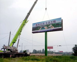 4、廣告牌牌面的安裝除了要注意吊裝過程中的安全問題,還要注意焊接的牢固性,以及連接處的防腐工作;吊裝提升過程中要注意調整廣告牌骨架是否傾斜,不斷調整,直至到安全位置為止,整個過程由專人指揮,并配以哨子統一作業。