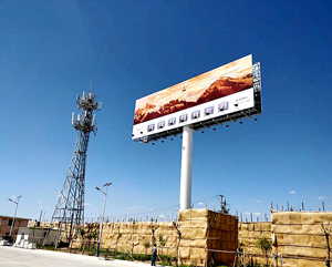 13765044678常見的高速廣告牌叫單立柱廣告塔,一般分為兩面T型牌和三面A型牌兩種主要的牌面樣式,其中的兩面牌由2個平行或夾角的牌面組成,主要適合于高速道路的兩側,有的考慮到車輛行駛的視覺效果,部分兩面牌的牌面設置成小幅度的角度。
