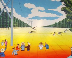 大方縣是文化部命名的首批“中國農民畫之鄉”,大方農民畫取材于生活,創作于民間。農民畫作者運用“以情造型、以情用色”的大膽夸張的表現手法,將民間剪紙、挑花、蠟染、刺繡等融合在繪畫中,用水粉顏料在宣紙上作畫,形成濃郁的民族民間風格和淳樸粗獷的畫風。
